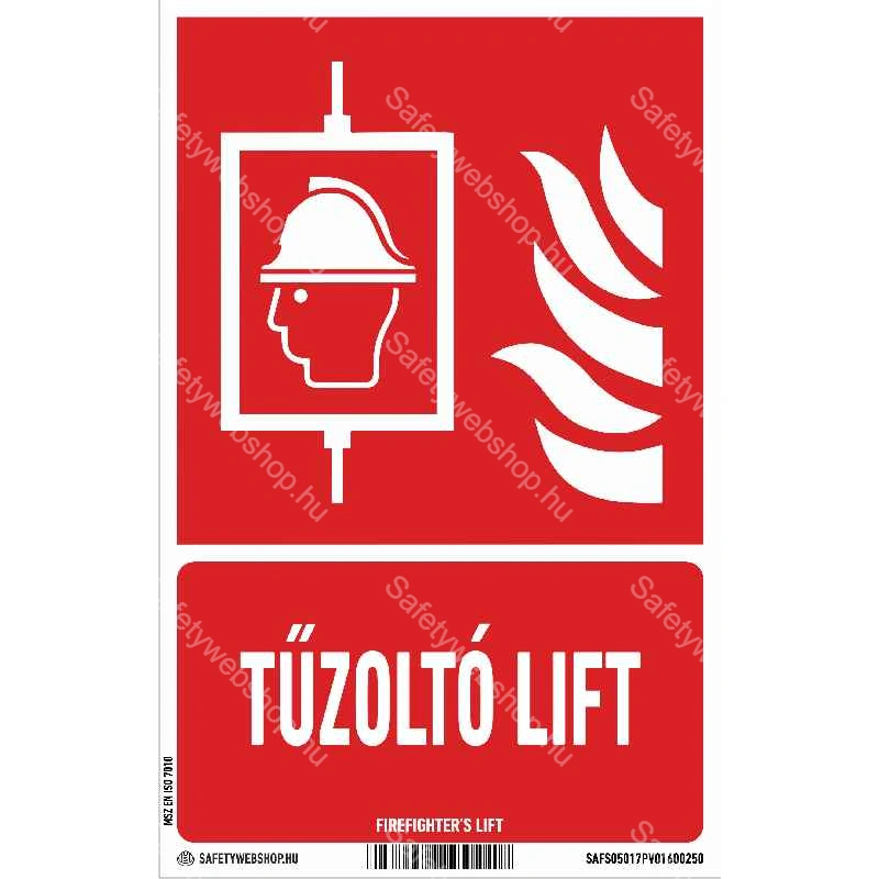 Tűzoltó lift matrica / tábla (ISO 7010-F017 piktogram + felirat)