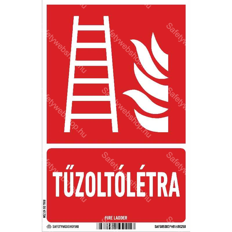 Tűzoltólétra matrica / tábla (ISO 7010-F003 piktogram + felirat)